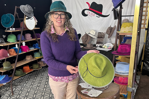 Farmer and award-winning designer, Jo-Anne Barr, from the New England region of NSW specialises in creating hand-felted hats from Australian wool.
