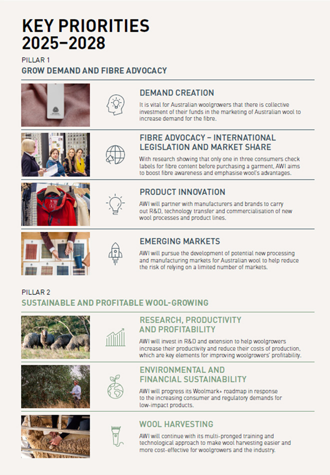 “Despite the challenges that the industry faces, I look forward to the AWI activities outlined in this Strategic Plan providing a valuable contribution to a productive and profitable wool industry.”