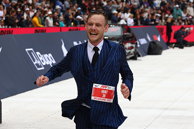 Hunt completed the full 42.2 kilometres in 2 hours, 38 minutes and 21 seconds wearing a custom suit by InStitchu, crafted entirely from Woolmark-certified Australian Merino wool – setting a world record for the fastest marathon ever run in a suit.